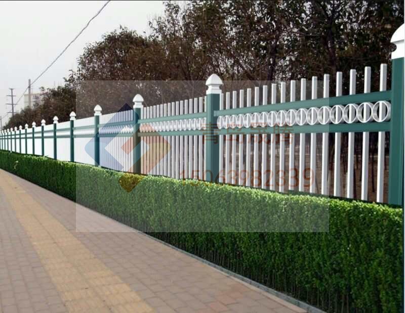 鋅鋼護欄整體高度2米,立柱中心距為3米,采用100mm*100mm方形鍍鋅鋼管作為立柱,40*40mm方形鍍鋅鋼管作為衡量,20mm*20mm方形鍍鋅管作為豎向連接桿,橫梁、立柱、豎向連接桿以沖孔穿接的方式連接,顏色搭配為綠白搭配給人以新鮮感。